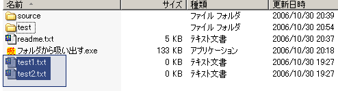- WindowsXPの仕様の為(?)に、31個位のフォルダを同時にこのソフトに投下すると、アクセス許可エラーが出て、ソフトが起動できず、吸いだし処理が行われません。